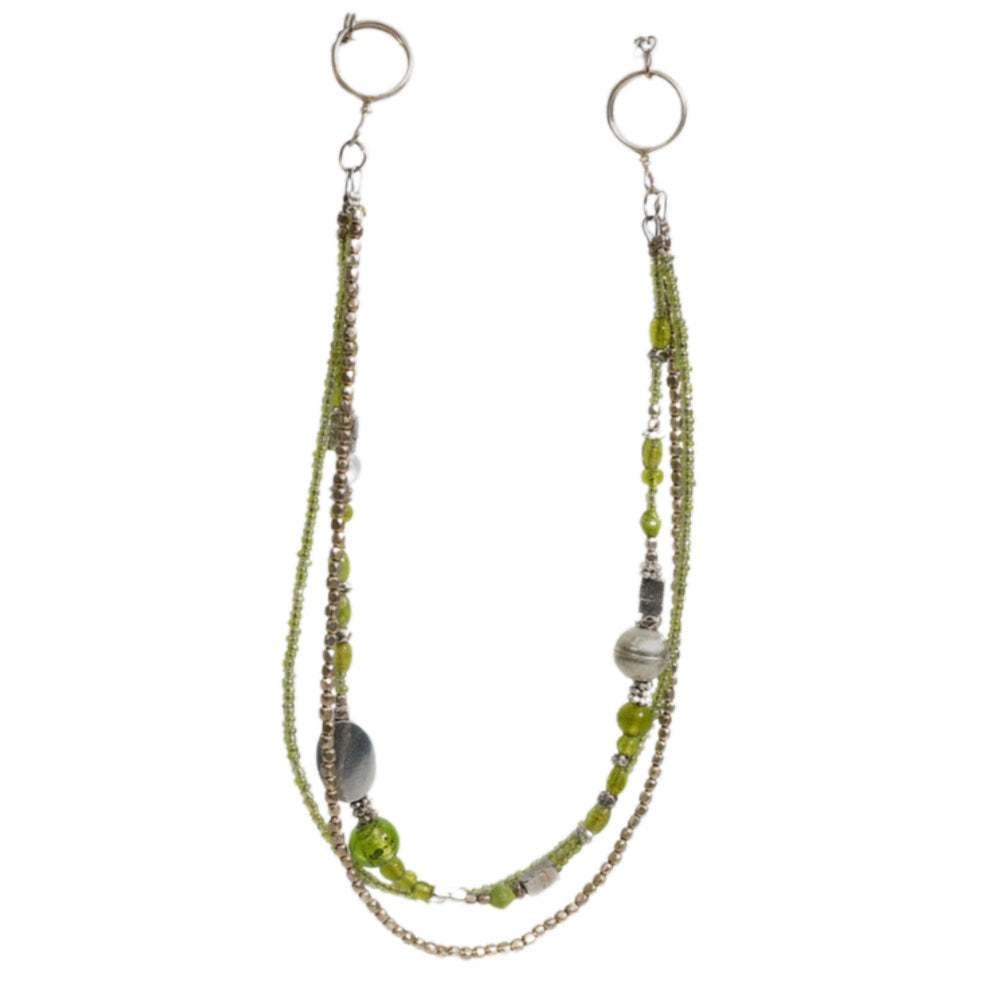 Add an earthy elegance to your look with the Delight Necklace—a stunning blend of organic tones and delicate craftsmanship. This layered piece features strands of shimmering seed beads in fresh green hues, accented by silver charms and statement beads for a touch of artistic flair.