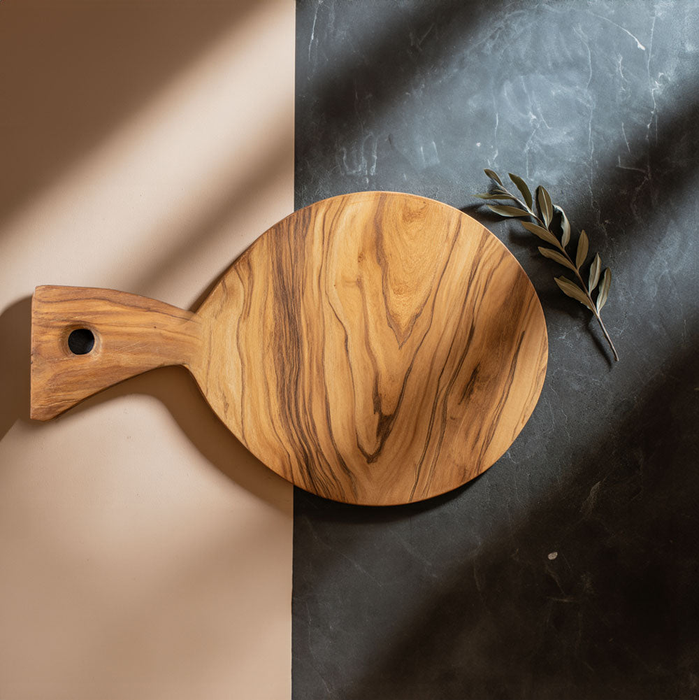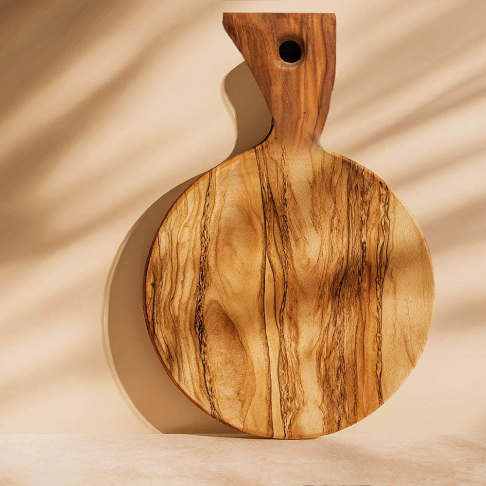 Olive Wood Cheese Board Circle– Handcrafted in Jordan